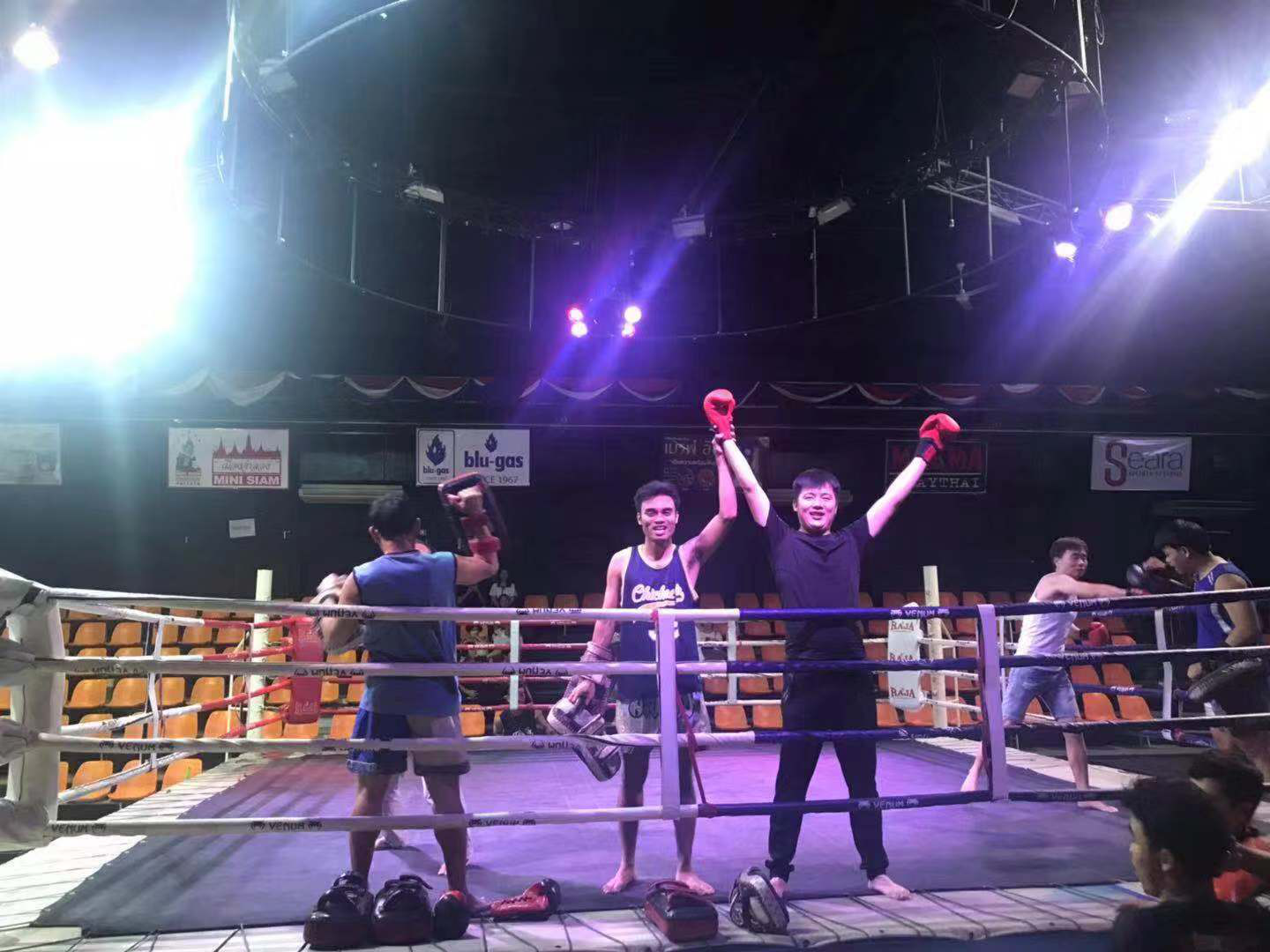 晚上安排观看一场泰拳龙凤争霸,泰国拳术有了500年的历史,作为泰国的传统搏击技术,其特点是可以在极短的距离下,利用手肘、膝盖等部位进行攻击,是一种非常狠辣的武术,杀伤力大。大赞!
