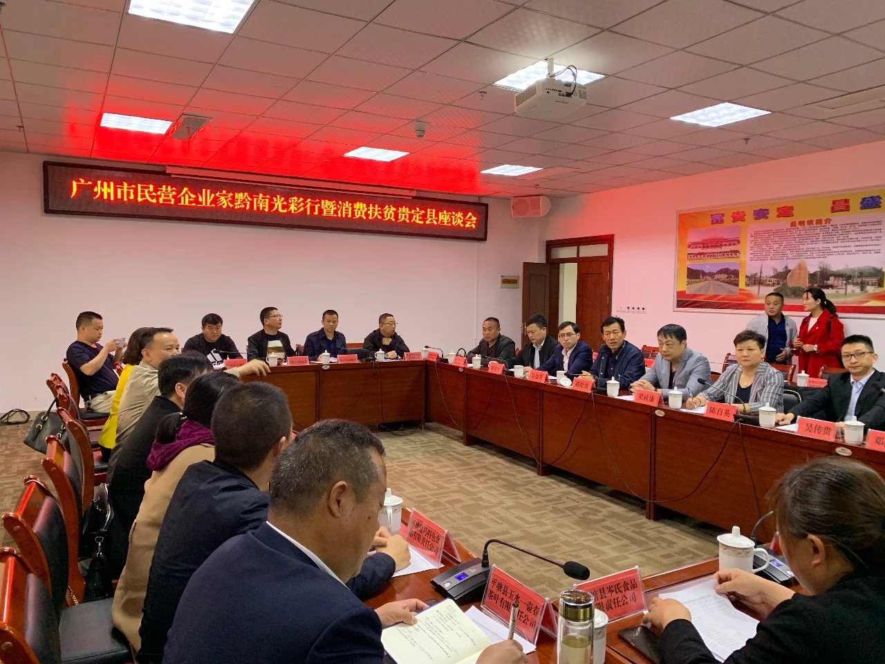 为做好东西部扶贫协作和对口帮扶工作,动员民营企业在“万企帮万村”行动中将消费扶贫纳入精准扶贫工作, 4月8日至12日,广州市委统战部组织食品流通和服装行业企业家代表赴毕节市、黔南州开展光彩行活动。毕节市委统战部副调研员何植林,黔南州委统战部常务副部长陈良海,黔南州委统战部副部长、州工商联党组书记吉永忠等有关领导参加考察调研和座谈活动。广州市委统战部光彩中心负责落实本次光彩行的组织策划、考察调研和座谈交流等工作。