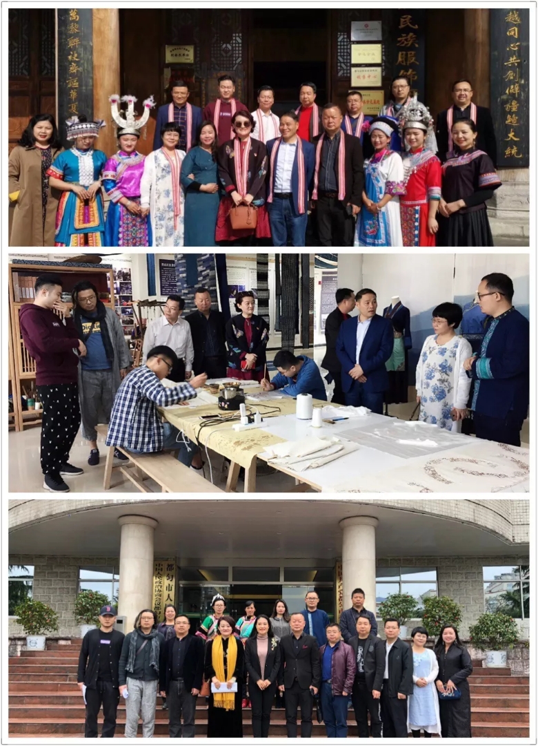 广州铠琪有限公司、广东名豪服饰有限公司、广东高尼奥科技有限公司、广州市慧霞时尚旗袍有限公司、小确幸服装工作室等5家服装行业企业代表一行分别到三都县、都匀市,先后考察了贵州亘蓝母图民族布艺蜡染开发有限公司、中和镇雪花洞水族马尾绣合作社、三都锦绣手工马尾绣有限公司、非遗文创园、非遗民族服饰博物馆、吾土吾生蓝染文创中心等,对苗族蜡染、水族马尾绣、布衣族服装等生产、销售以及织布、蜡染、刺绣等工艺进行深入细致的调研。