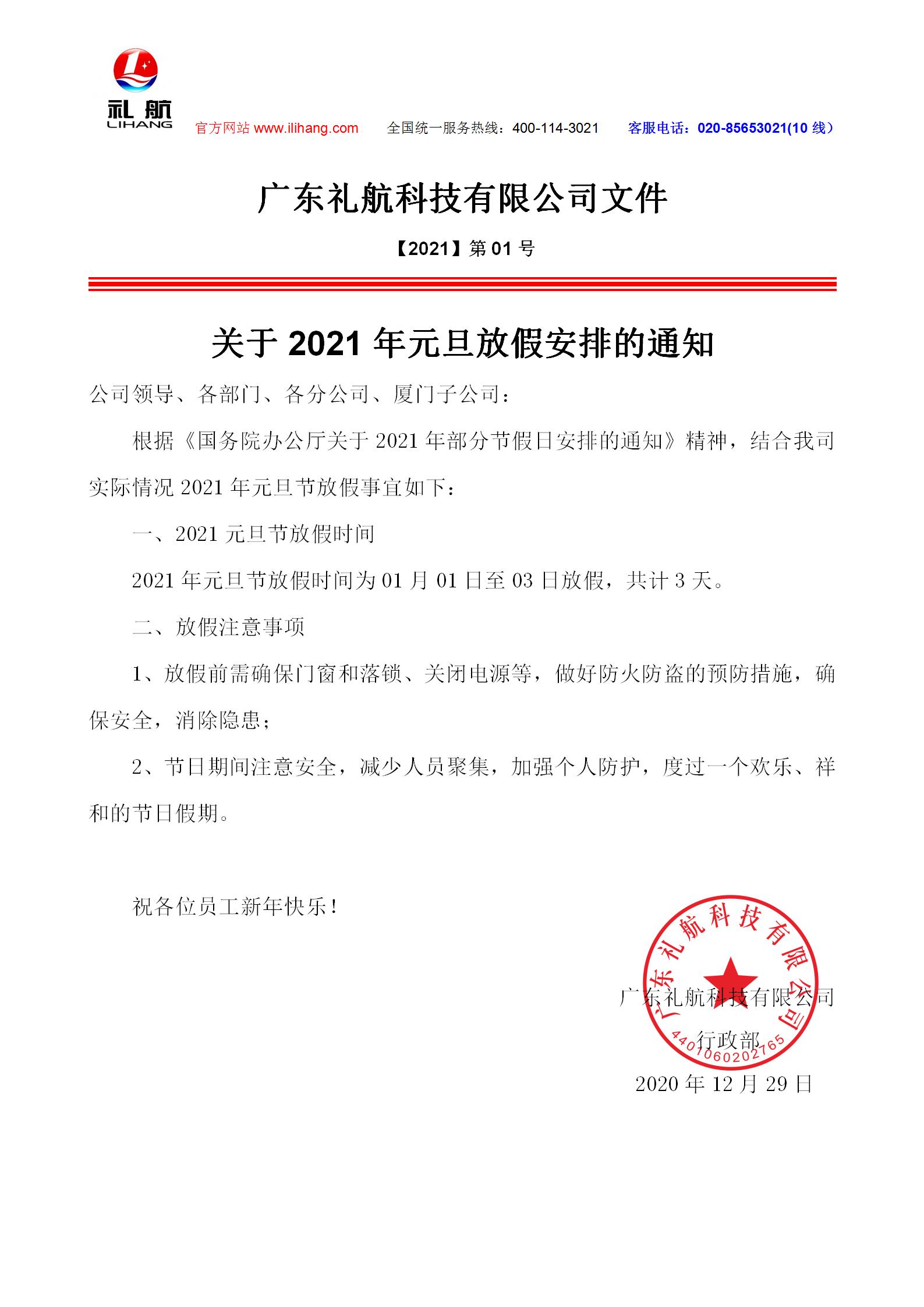 【放假通知】关于2021年元旦放假安排的通知