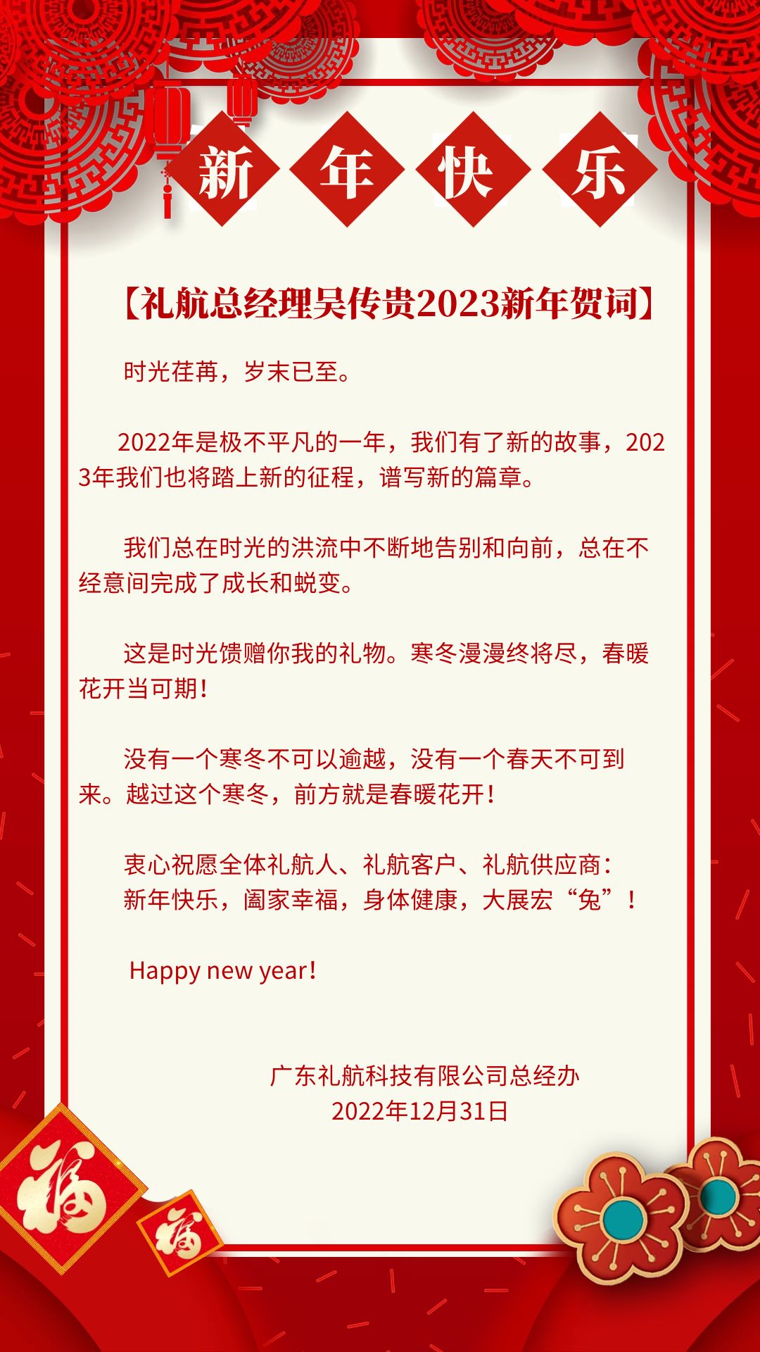 【礼航总经理吴传贵2023新年贺词】