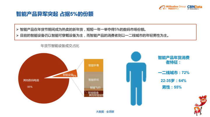 当然智能产品依旧是80、90的最爱,比如智能手环、智能手表、智能飞行设备等。年轻男性占比较大,分布在一二线城市。