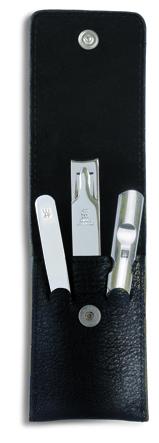 经典的组合适合亚洲人士需求,三件套产品均为不锈钢材质镜面抛光,炫亮夺目,气质出众。黑色皮套为牛皮材质。