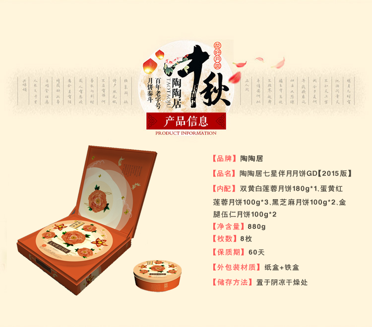 产品名称:陶陶居七星伴月月饼GD880g【2015版】