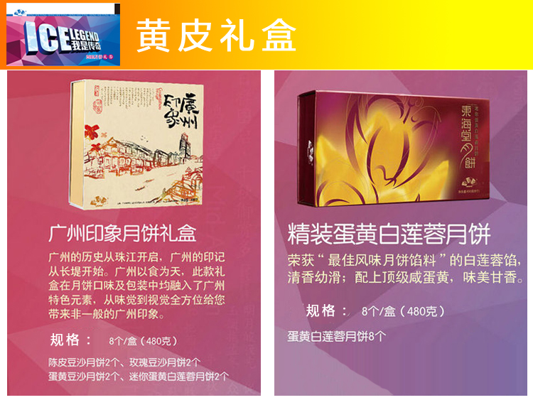 油皮礼盒:精装蛋黄白莲蓉月饼、广州印象月饼礼盒